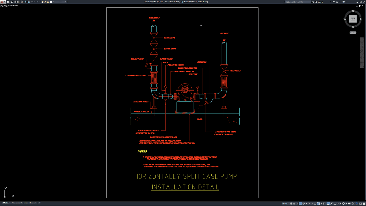 File yang dibagikan berisi gambar detail instalasi pompa split case horizontal dalam format .DWG, sehingga dapat langsung dibuka menggunakan AutoCAD versi terbaru maupun versi lama (minimal AutoCAD 2004). File ini juga dapat diedit dan disesuaikan dengan kebutuhan desain proyek, baik untuk gedung bertingkat, fasilitas industri, maupun sistem fire fighting.