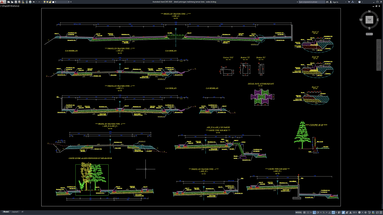 File yang saya bagikan kali ini menyajikan gambar detail potongan melintang taman kota. Gambar cukup lengkap cocok untuk tujuan edukasi. Hanya sekedar untuk memberikan referensi pembelajaran ataupun acuan gambar kerja. Ini sangat bagus untuk pemula atau yang baru menekuni bidang arsitektur. Silahkan diresapi dulu baik-baik keterangan gambarnya, maklum berbahasa Prancis takutnya ada teman-teman gak ngerti bahasa Prancis. Silahkan di translate aja ya di Google Translate.