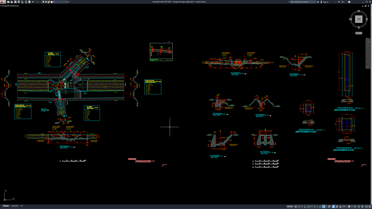 Hanya sekedar untuk memberikan referensi pembelajaran ataupun acuan gambar kerja. Ini sangat bagus untuk pemula atau yang baru menekuni bidang arsitektur. Silahkan disesuaikan dengan gambar utamanya jika ingin membuat detail-detail lainnya, tentunya harus memahami dulu struktur dari sebuah bangunan air.