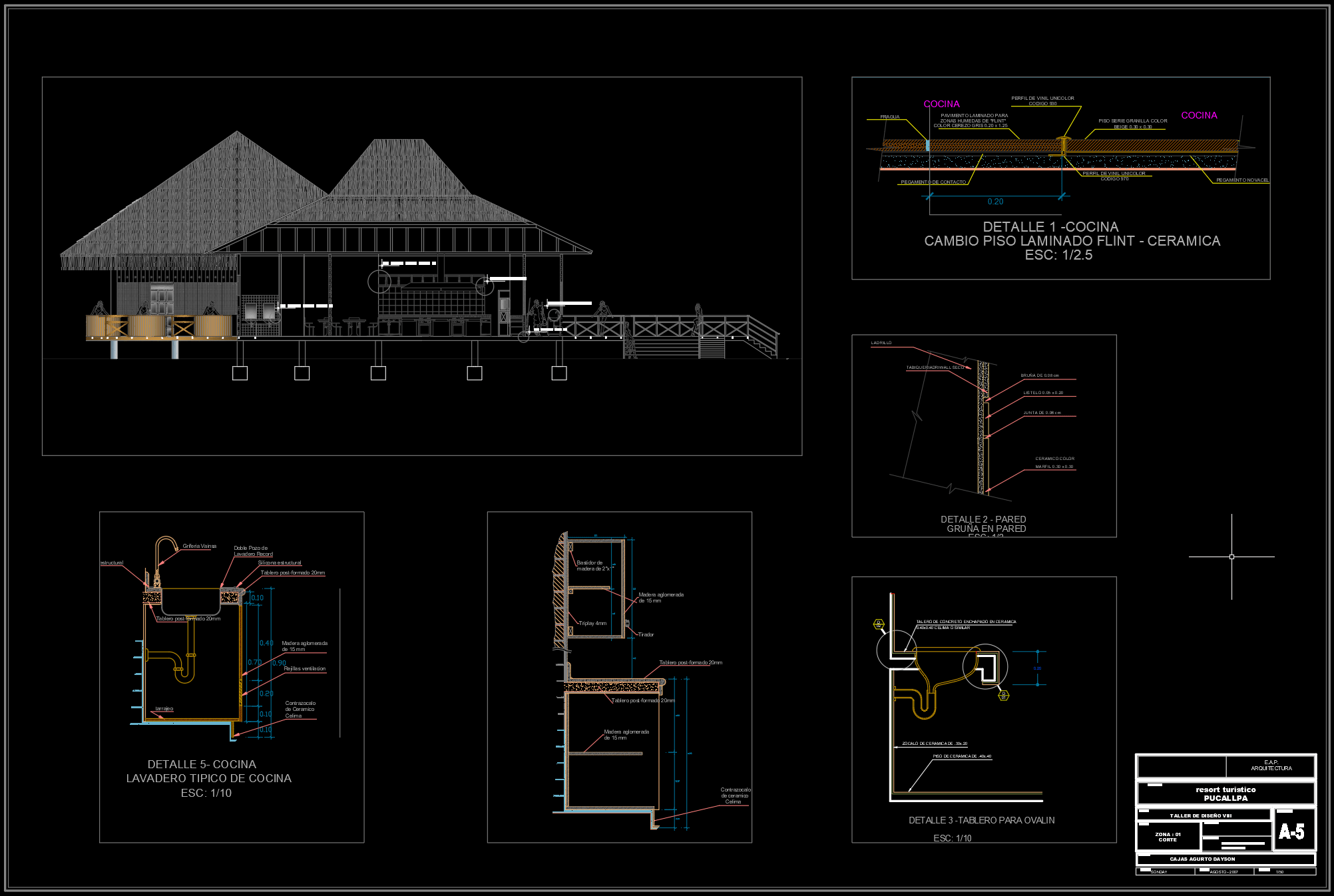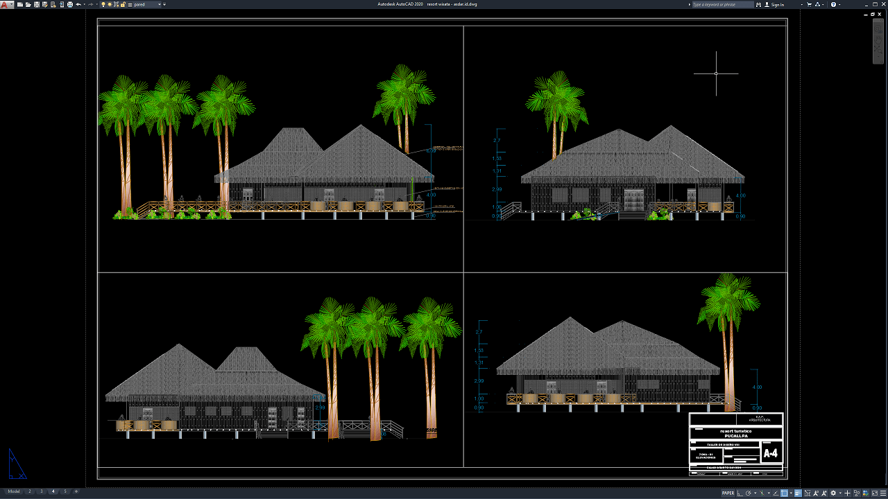 File yang saya bagikan kali ini menyajikan gambar resort yang cukup lengkap. Gambar terdiri dari denah, tampak, potongan, dan beberapa detail. Hanya sekedar untuk memberikan referensi pembelajaran ataupun acuan gambar kerja. Ini sangat bagus untuk pemula atau yang baru menekuni bidang arsitektur. Silahkan disesuaikan dengan gambar utamanya jika ingin membuat detail-detail lainnya, tentunya harus memahami dulu struktur dari resort yang lebih mengarah ke bangunan tradisional.