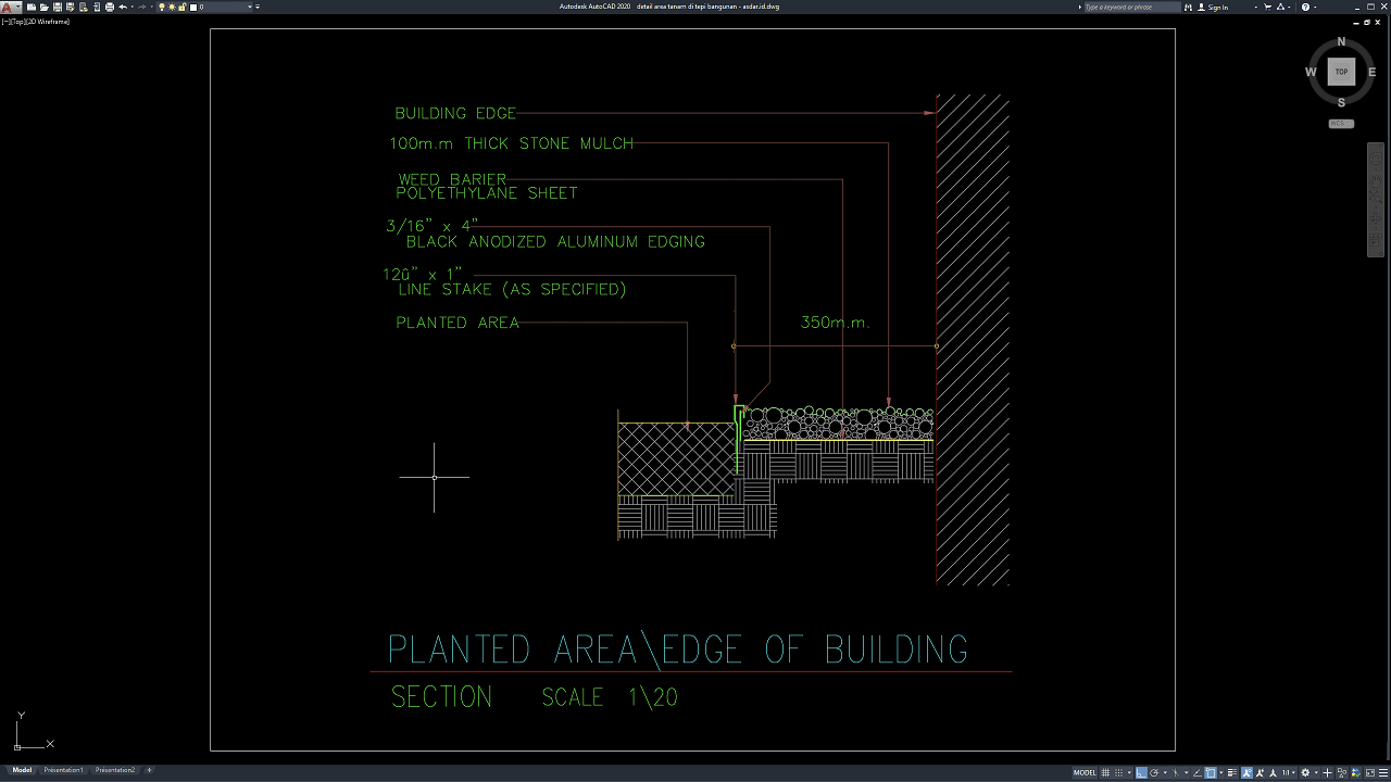 File yang dibagikan pada artikel ini berupa Gambar Detail Area Tanam di Tepi Bangunan dalam format DWG AutoCAD yang dapat digunakan sebagai referensi dalam pembuatan gambar kerja lanskap maupun desain arsitektur.