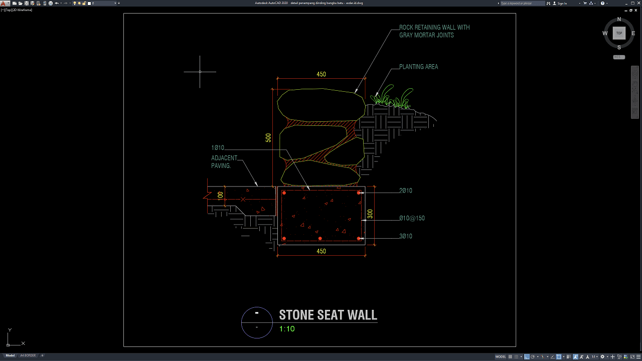 asdar.id menyediakan Member Premium Download untuk download file tanpa embel-embel iklan dan halaman, apa lagi harus menunggu timer yang begitu lama. Dengan berlangganan Member Premium Download, semua file dapat didownload dengan singkat langsung menuju ke sumbernya!, klik DISINI untuk DAFTAR atau DISINI untuk LOGIN :-) Jika ada pertanyaan silahkan hubungi Admin DISINI. Untuk cara download file Member Free Download, bisa membaca Tutorial Download yang ada dibawah Timer (halaman Safelink) saat menekan tombol download.Halo rekan-rekan arsitek, drafter, desainer lanskap, serta praktisi konstruksi yang sedang mengerjakan proyek ruang terbuka maupun kawasan publik. Pada kesempatan kali ini, saya akan membagikan referensi Gambar Detail Penampang Dinding Bangku Batu DWG AutoCAD yang dapat digunakan sebagai acuan dalam menyusun gambar kerja elemen lanskap, khususnya bangku yang menyatu dengan dinding (stone seat wall).