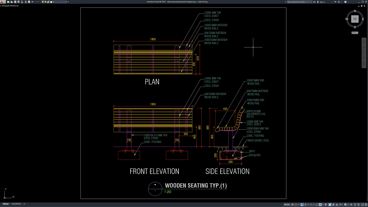 Halo rekan-rekan arsitek, drafter, desainer lanskap, serta praktisi konstruksi yang sedang mengerjakan proyek taman, ruang terbuka, maupun fasilitas publik. Pada artikel ini saya akan membagikan referensi Gambar Detail Penampang Tipikal Bangku Kayu DWG AutoCAD yang dapat digunakan sebagai acuan dalam penyusunan gambar kerja elemen street furniture berbahan kayu.
