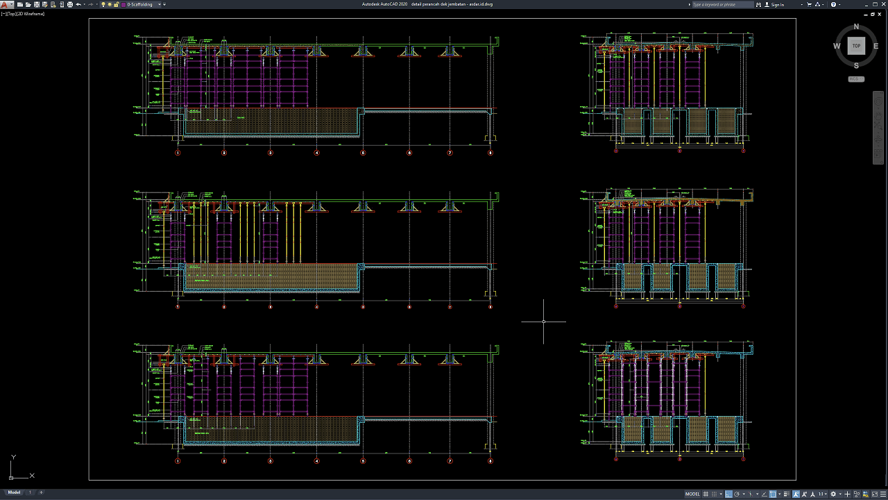 Dalam proyek konstruksi jembatan, sistem perancah memegang peranan penting sebagai penopang sementara struktur dek jembatan sebelum elemen beton mencapai kekuatan rencana. Tanpa perencanaan perancah yang baik dan detail, pekerjaan konstruksi berisiko mengalami kegagalan struktur sementara, keterlambatan pekerjaan, hingga potensi kecelakaan kerja di lapangan. Oleh karena itu, penggunaan gambar detail perancah dalam format AutoCAD menjadi kebutuhan utama pada setiap proyek jembatan.