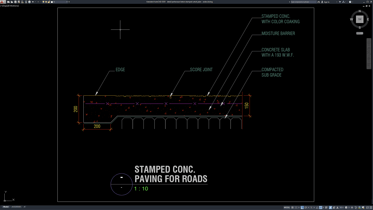 File yang dibagikan pada artikel ini berupa Gambar Detail Perkerasan Beton Stamped untuk Jalan dalam format DWG AutoCAD yang dapat digunakan sebagai referensi dalam pembuatan gambar kerja konstruksi perkerasan jalan.