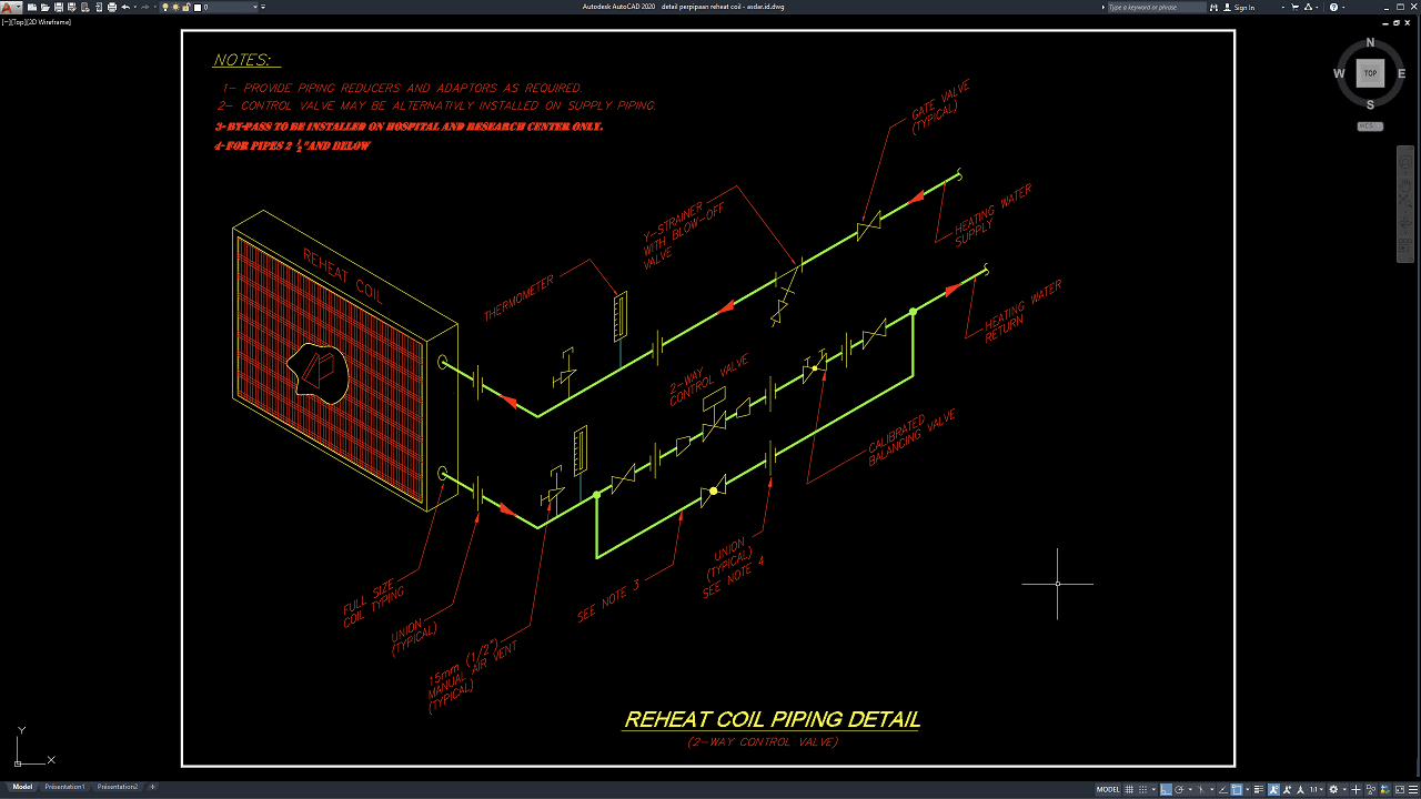 Halo rekan-rekan arsitek dan sipil, semoga selalu sehat dan sukses dalam setiap aktivitas. Pada kesempatan kali ini saya akan membagikan Gambar Detail Perpipaan Reheat Coil DWG AutoCAD yang dapat dijadikan referensi gambar kerja untuk sistem HVAC dan mekanikal bangunan. File ini sangat bermanfaat bagi mahasiswa, drafter, maupun praktisi MEP yang membutuhkan acuan detail perpipaan yang rapi dan aplikatif.