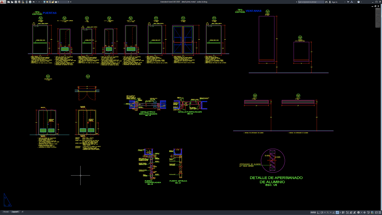 Download Gambar Detail Pintu Metal DWG AutoCAD