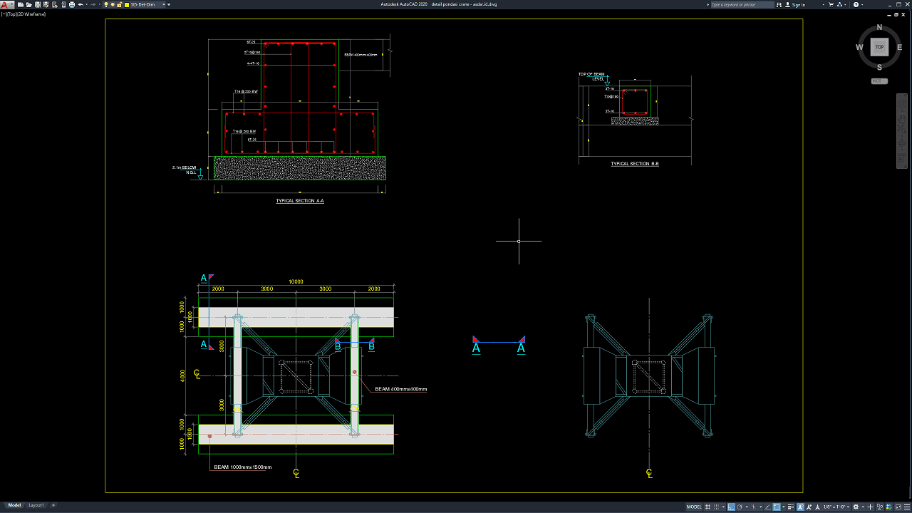 Download Gambar Detail Pondasi Crane DWG AutoCAD