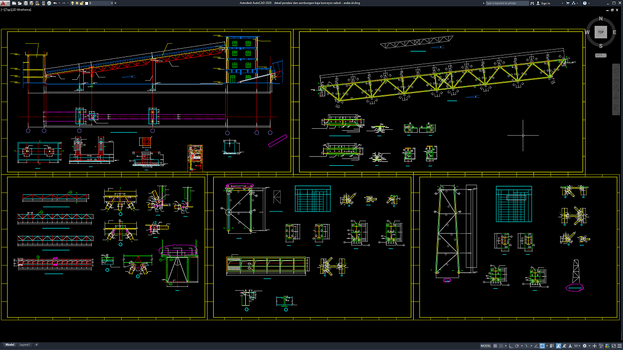 Hanya sekedar untuk memberikan referensi pembelajaran ataupun acuan gambar kerja. Ini sangat bagus untuk pemula atau yang baru menekuni bidang arsitektur maupun civil engineering. Silahkan disesuaikan dengan gambar utamanya jika ingin membuat detail-detail lainnya, tentunya harus memahami dulu detail baja konveyor sabuk.