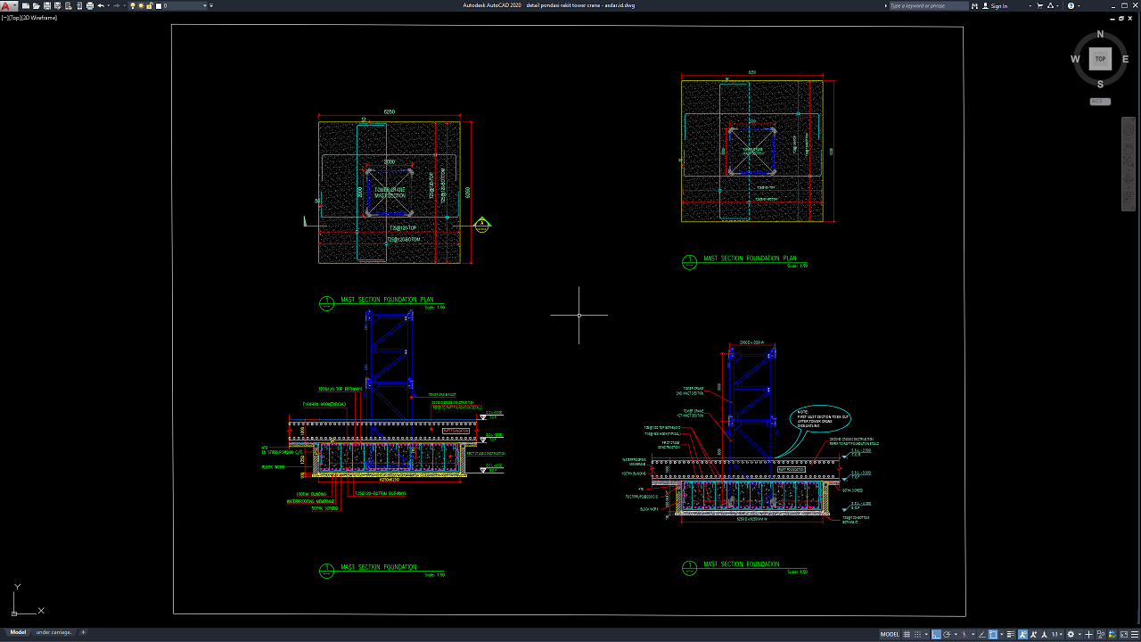 Download Gambar Detail Pondasi Rakit Tower Crane DWG AutoCAD