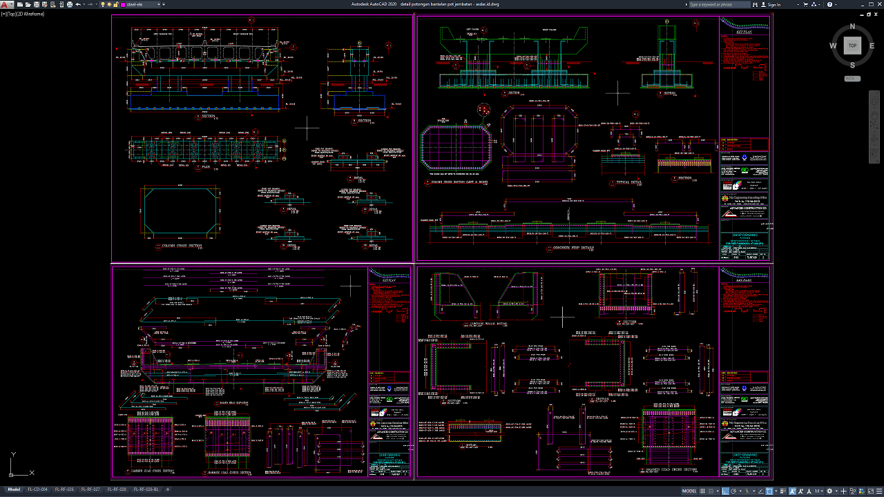 Hanya sekedar untuk memberikan referensi pembelajaran ataupun acuan gambar kerja. Ini sangat bagus untuk pemula atau yang baru menekuni bidang arsitektur maupun civil engineering. Silahkan disesuaikan dengan gambar utamanya jika ingin membuat detail-detail lainnya, tentunya harus memahami dulu detail bantalan pot jembatan.