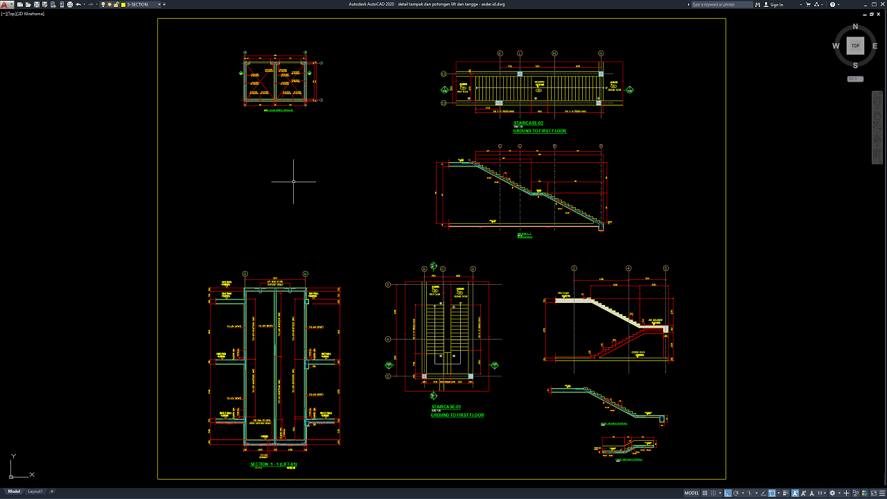 File yang saya bagikan kali ini menyajikan gambar detail tampak dan potongan lift dan tangga yang cukup lengkap. Gambar lift dan tangga ini terdiri dari detail denah dan potongan. Anda juga bisa memodifikasi gambarnya sesuka anda asalkan sesuai dengan standar lift dan tangga. Gambar ini saya dapatkan di Internet, mohon maaf jika didalam gambar ada keterangan yang tidak lengkap mohon dimaklumi.