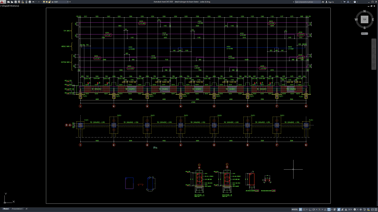 Oleh karena itu, penggunaan gambar detail tulangan tie beam beton dalam format DWG AutoCAD menjadi kebutuhan utama dalam setiap proyek konstruksi. Gambar kerja yang rapi, terukur, dan terstandar akan sangat membantu proses pelaksanaan di lapangan serta meminimalkan kesalahan pemasangan tulangan.