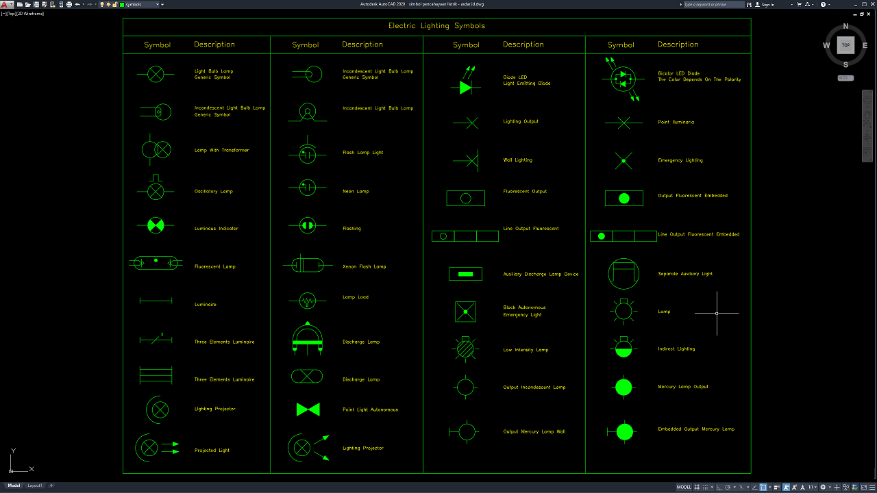 Download Gambar Simbol Pencahayaan Listrik DWG AutoCAD
