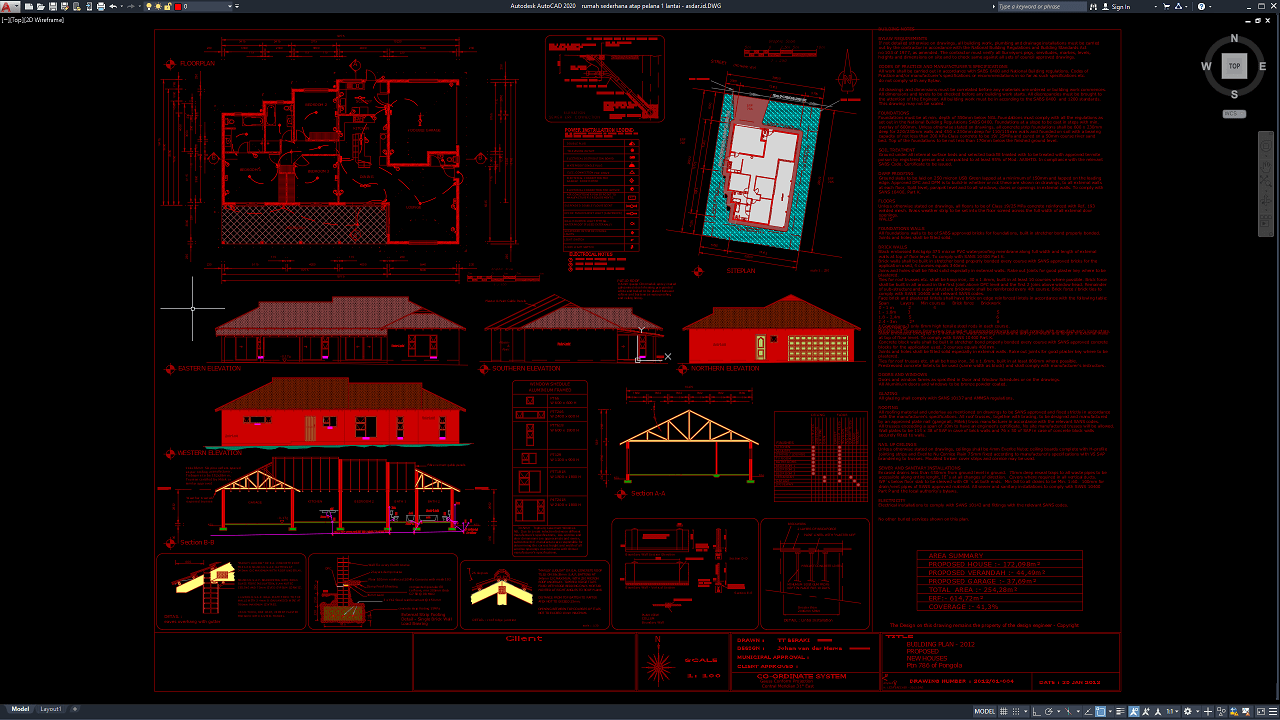 File yang saya bagikan kali ini menyajikan gambar siteplan, denah, tampak, potongan, dan beberapa detail dari rumah sederhana atap pelana 1 lantai yang tidak lengkap. Gambar ini hanyalah sebagai pembelajaran saja, namanya juga referensi jadi hanya gambar dasar saja yang disajikan. Silahkan tambahkan sendiri gambar apa saja yang kurang, gambar awalnya sudah ada itung-itung buat belajar mendesain.