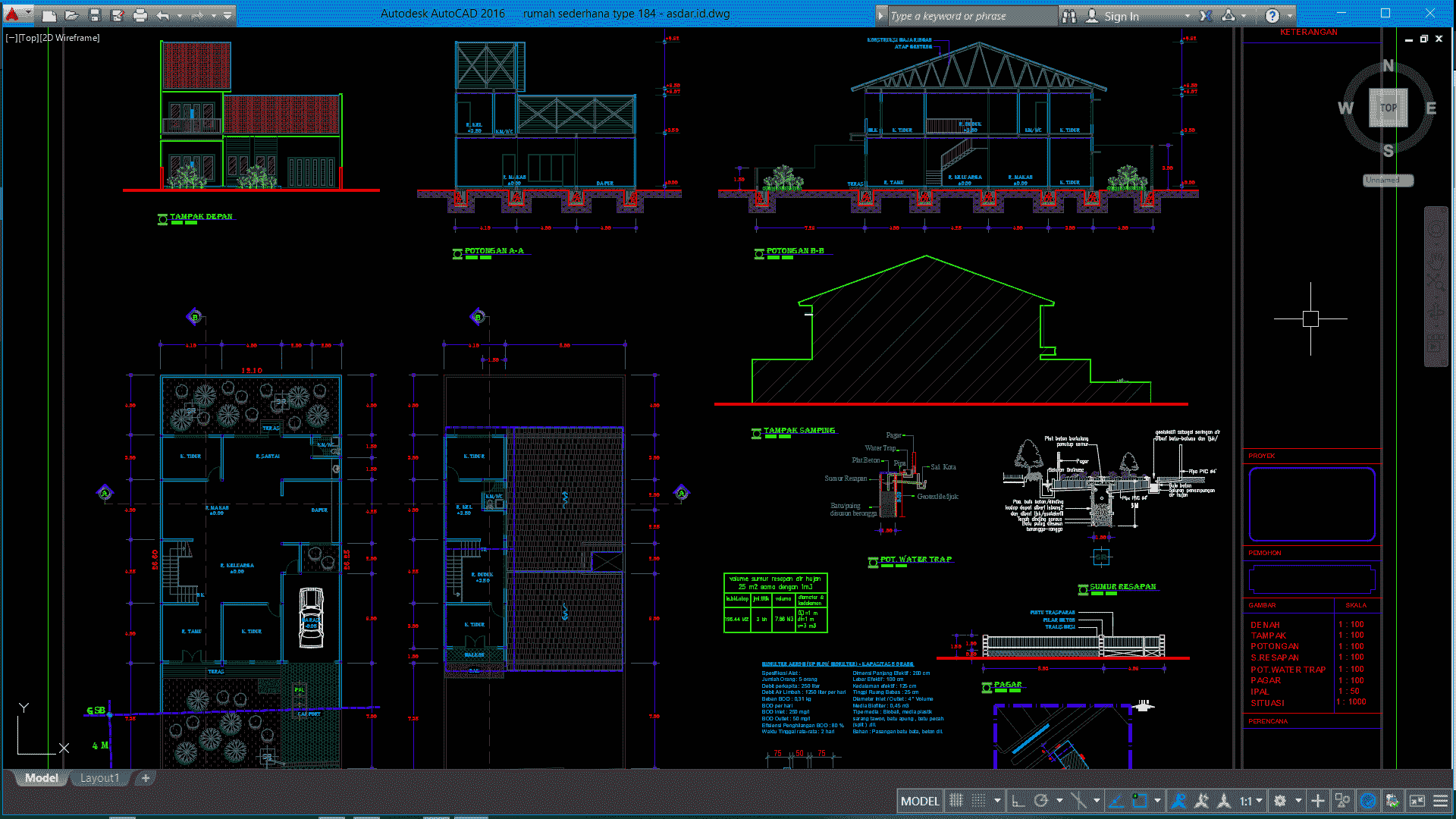 Download Rumah Sederhana Type 184 Format DWG AutoCAD