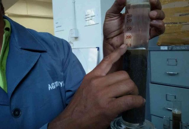 Kandungan lumpur pada agregat halus diperiksa dengan menggunakan sistem kocokan. Sistem ini digunakan dengan cara mengocok gelas ukur yang berisi pasir sebanyak 130 cc dan air hingga mencapai tinggi 200 cc selama kurang lebih 15 menit. Setelah didiamkan selama +24 jam, kemudian diamati dan dihitung kandungan lumpurnya dengan rumus: