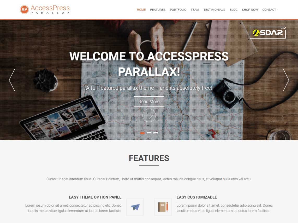 AccessPress Parallax adalah tema WordPress gratis dan responsive yang indah dengan desain Parallax. Desain paralax telah menjadi populer dan diimplementasikan secara luas sampai saat ini. Tema ini mungkin adalah tema parallax WordPress yang paling indah, kaya fitur dan lengkap dengan fitur lainnya seperti: sepenuhnya responsif, panel opsi tema muka, slider fitur, pengaturan posting muka, layanan/ tim/ blog/ portofolio/ tata letak testimonial, integrasi peta Google, kustom ikon logo/ fav, ajakan bertindak, animasi CSS, SEO friendly, terjemahan siap, dukungan RTL, CSS/ JS khusus, dan lainnya. Lebih dari itu, tema ini sepenuhnya siap dengan terjemahan, WooCommerce Kompatibel, bbPress Kompatibel dan sepenuhnya mendukung multilanguage melalui plugin POLYLANG.